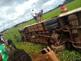 Um ônibus clandestino com nome de Mineiro Tur capotou na manhã de hoje (08), em Palmeirândia, causando a morte de duas pessoas e deixando várias feridas.O acidente foi entre Palmeirândia e Peri Mirim. O veículo fazia a linha São Bento a São Luís.